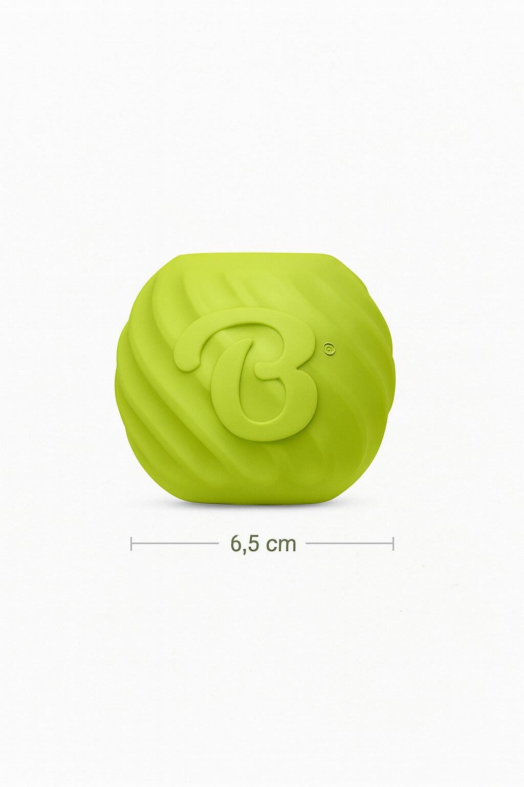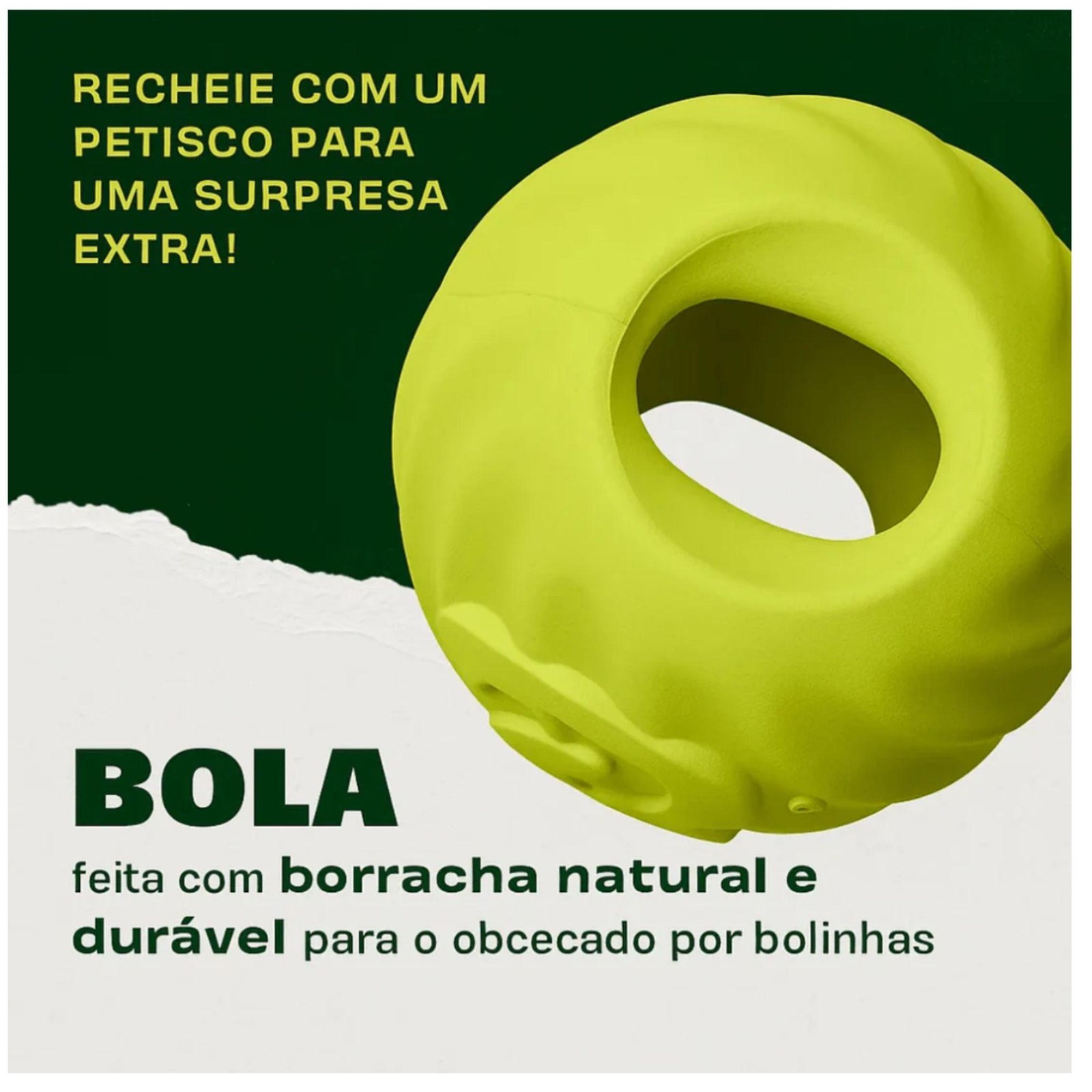 O Benebone Bounce Ball é feito de borracha natural e indicado para cães de pequeno a médio porte. Pode ser recheado com alimento natural ou petiscos pastosos como pasta de amendoim, tornando a brincadeira de bola ainda mais atrativa e estimulante.