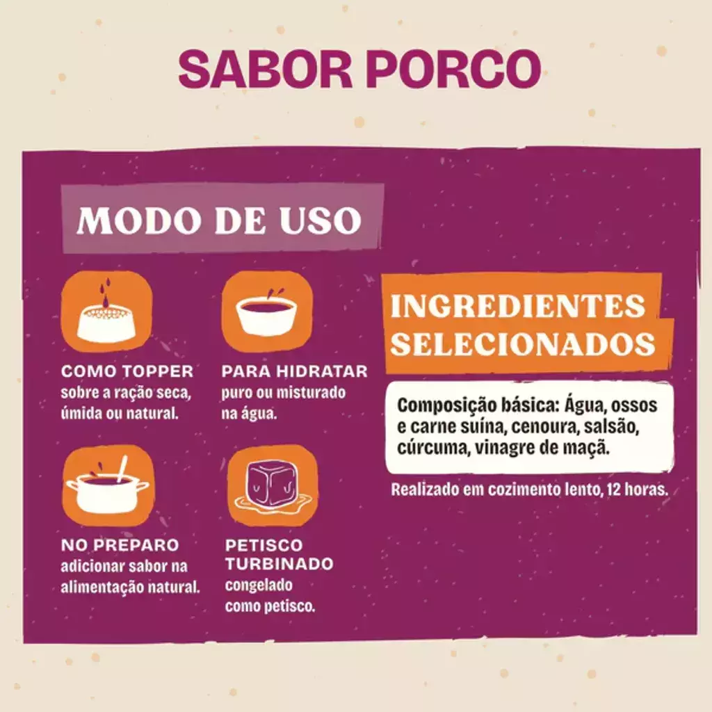 ÁGUAOSSOS E CARNES SUÍNASABÓBORA PAULISTASALSÃOCÚRCUMAVINAGRE DE MAÇÃ.