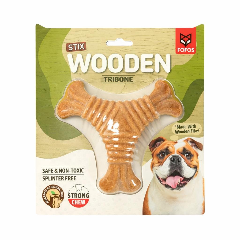 Mordedor Tribone de Madeira Natural para Cães