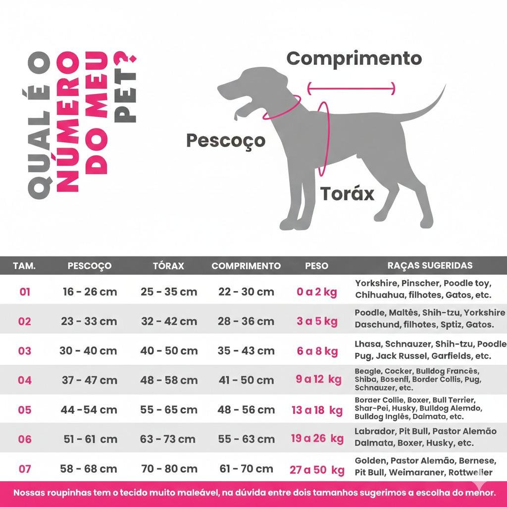 Com tecido especial de alta elasticidade, se adapta facilmente ao corpo do pet.